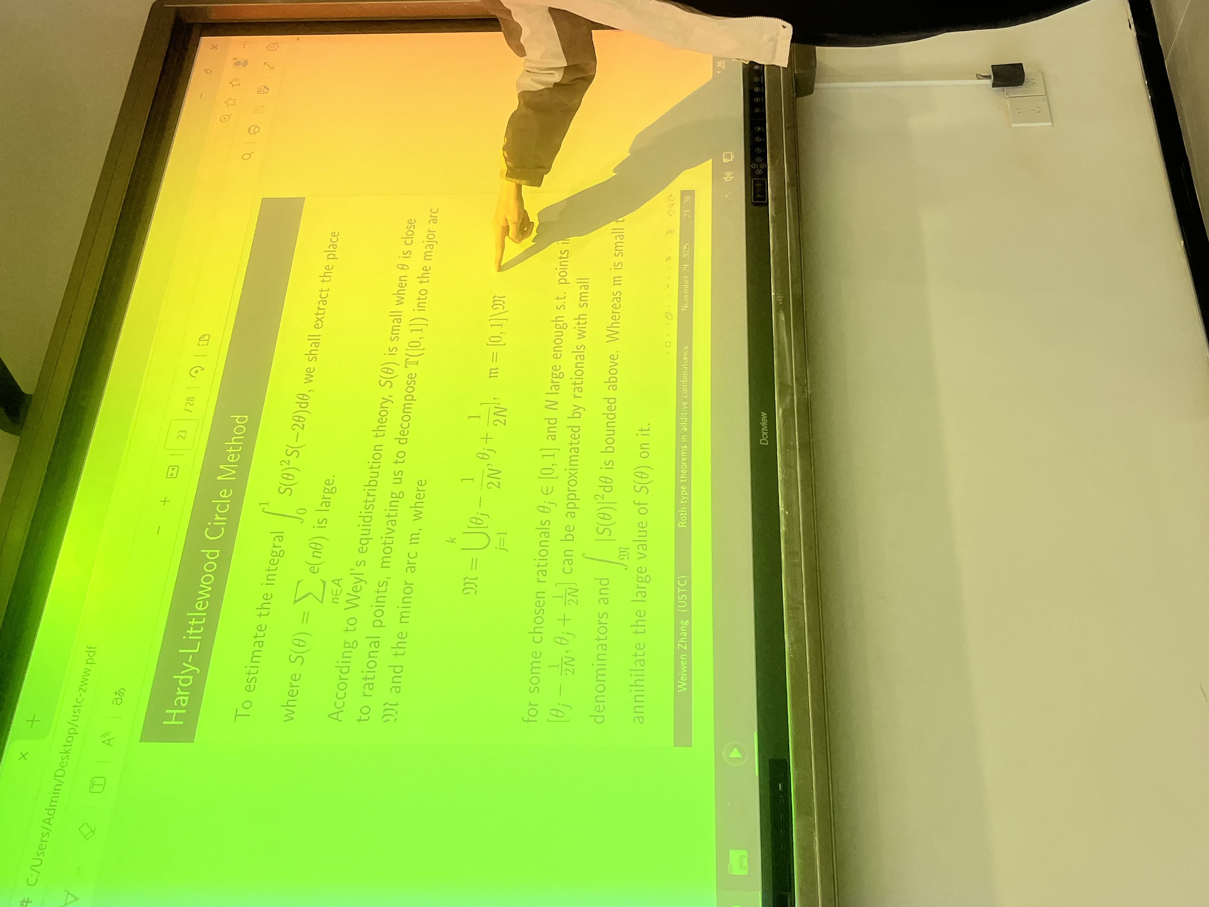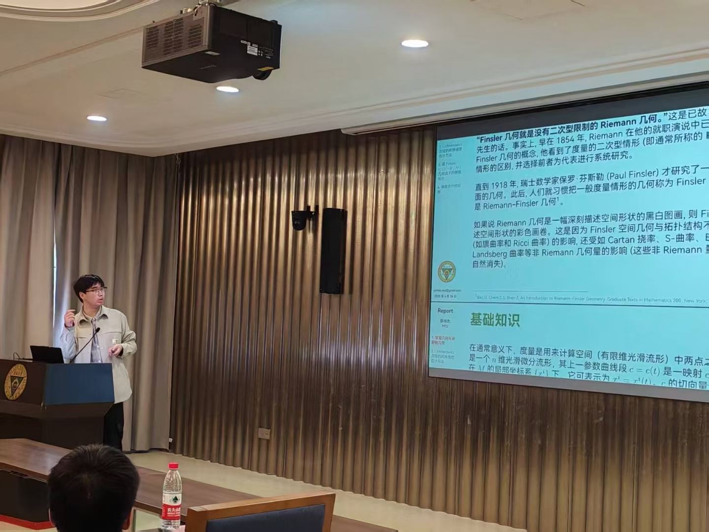 我有幸再次以学生代表身份,与 SEU 和 USTC 两校同学进行了一次简短的学术交流。这半小时,既是一场思维的试炼,也是对心路历程的一次崭新开启,能与中科大同道切磋研讨,尤感幸甚。其间,尤其可喜的是结识了中科大的章同学(下图即为章同学报告的部分,但不知道为什么被我拍成了彩色 doge)。学术交游,贵在相知,片刻的邂逅,亦足以珍藏。